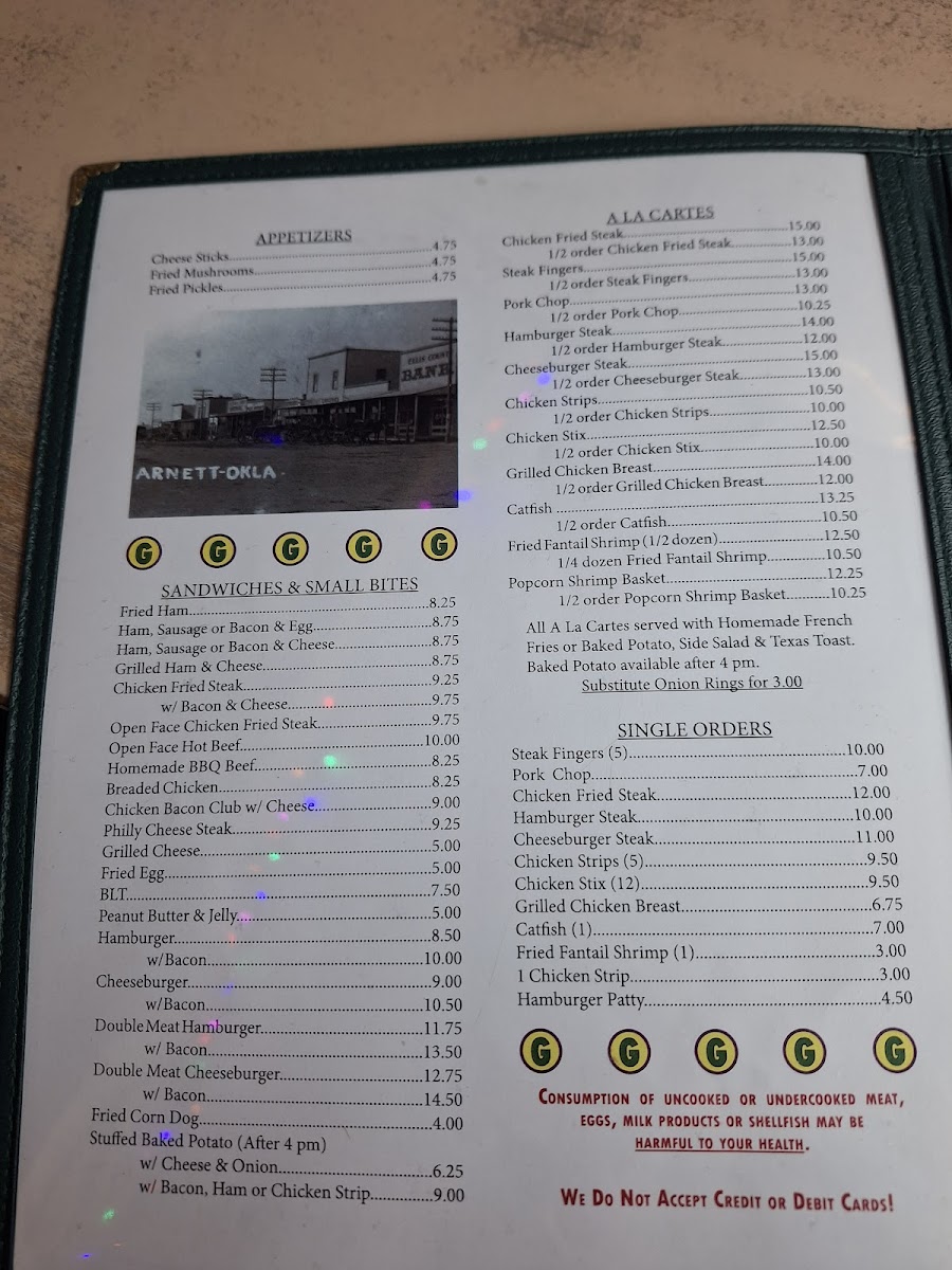 Welcome to Circle G Cafe, nestled in the heart of Arnett, Oklahoma, at 604 Renfrow Ave. This charming cafe exemplifies the quintessential small-town dining experience, where every plate tells a story of homemade goodness and friendly service. With a phone line ready to take your queries at +1 580-885-7744, you're just a call away from indulging in a meal that truly feels like a warm embrace.